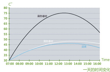● 淺顏色的表面反射紫外線照射,卷材表面吸收熱量少,溫度低。